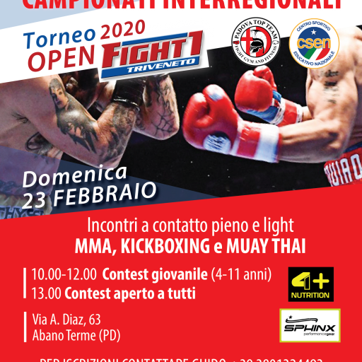 Ospitiamo il torneo di Fight 1 presso la nostra palestra Padova Top Team. Un torneo aperto a tutti di MMA, kick boxing e muay thai. Gli incontri saranno sia a contatto pieno che light, mentre precedente agli incontri saranno i contest giovanili dai 4 agli 11 anni. DOMENICA 23 FEBBRAIO, non perdertel...